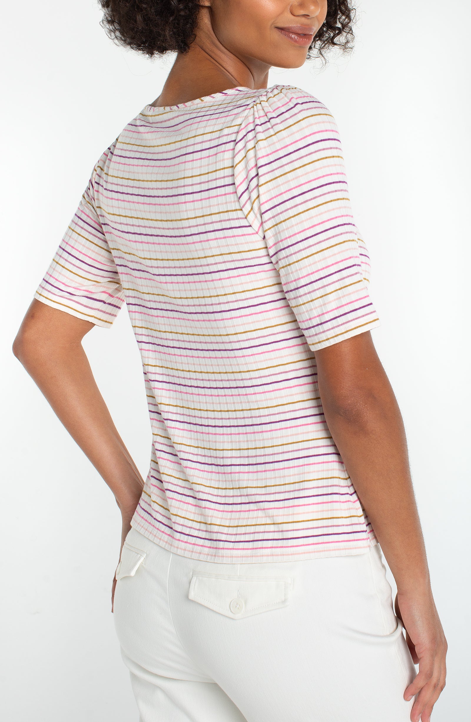 Liverpool 1/2 Sleeve Sweetheart Knit Top (Cream Pink Stripe)