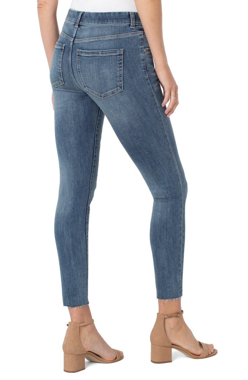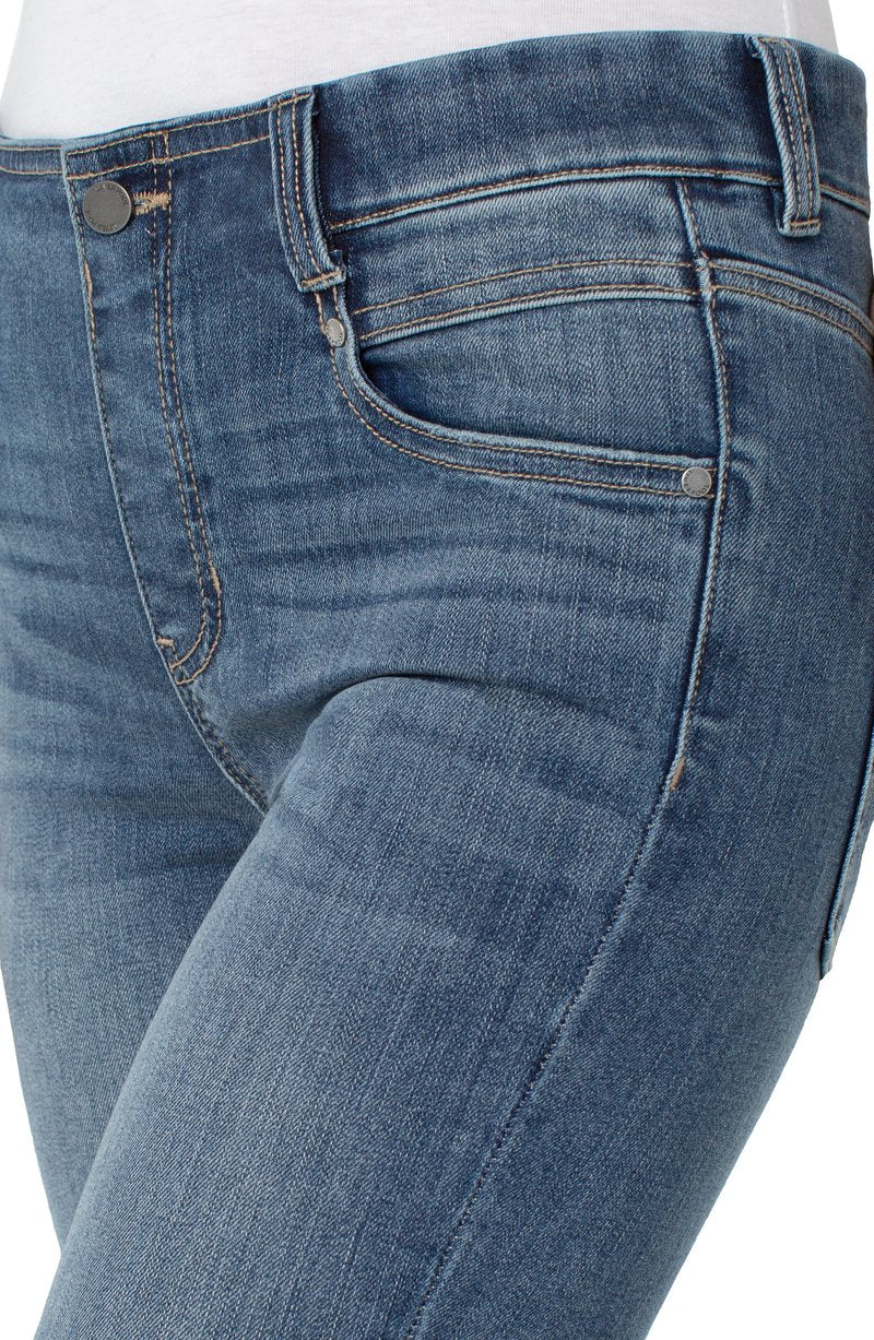 Glide on and GO! It's that easy. The Gia is the perfect hybrid between a pull-on and a 5-pocket jean! This modern eco jean was designed using new laser techniques and processes that gives the "Liverpool Look" and uses a fraction of our natural resources.