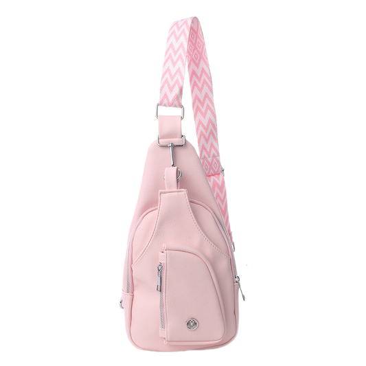 Rose Pink Leather Crossbody Bag Patterned Strap