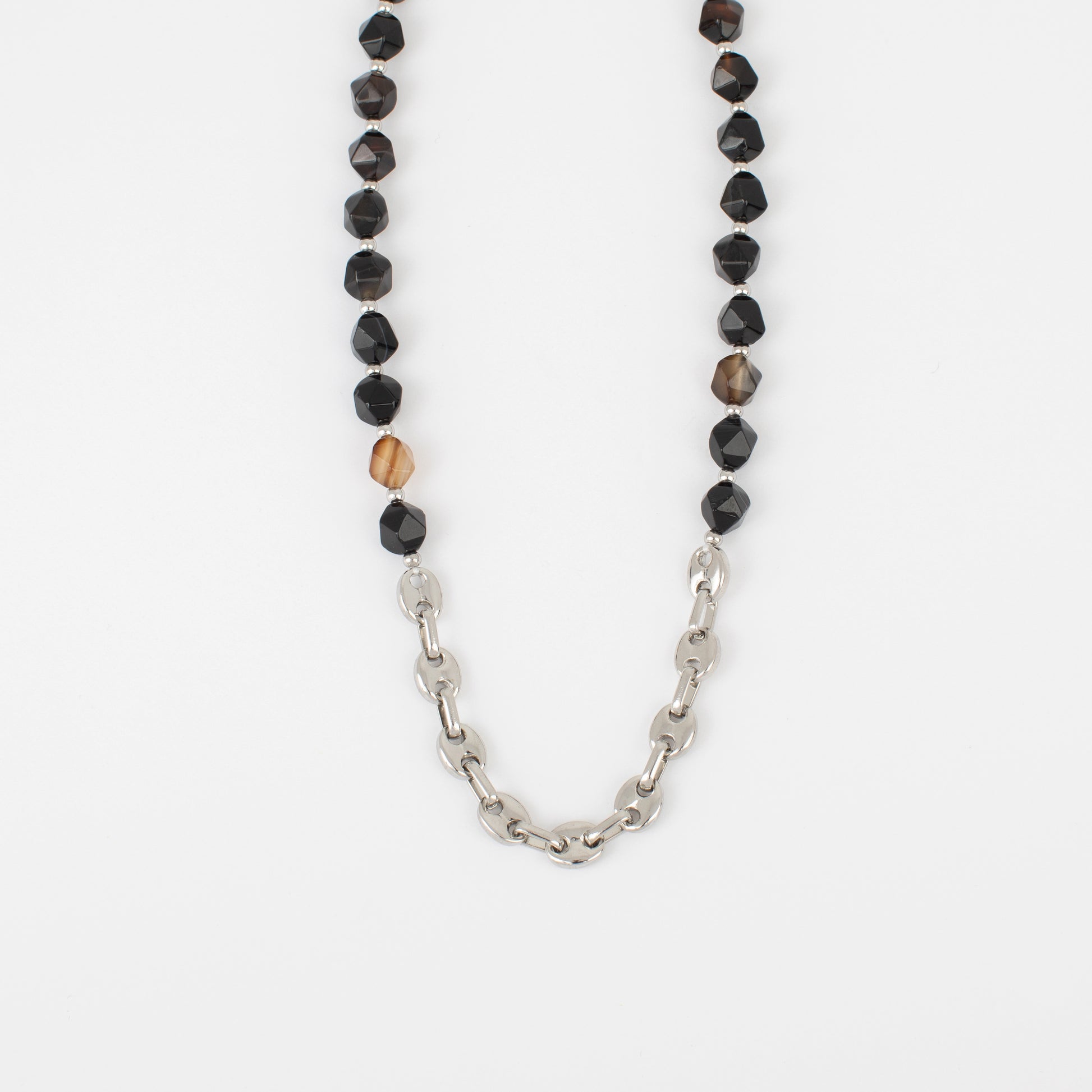 The Asher Necklace is a bold, earthy statement piece that brings depth and character to any look. Featuring a striking mix of stainless, glass, and stripsagate stones, its rich black and brown hues add warmth and texture with a grounded, natural vibe. Adjustable from 17"–20", it’s perfect worn solo or personalized with a charm to create the ultimate statement. The Asher Necklace is powerful, versatile, and made to stand out.
