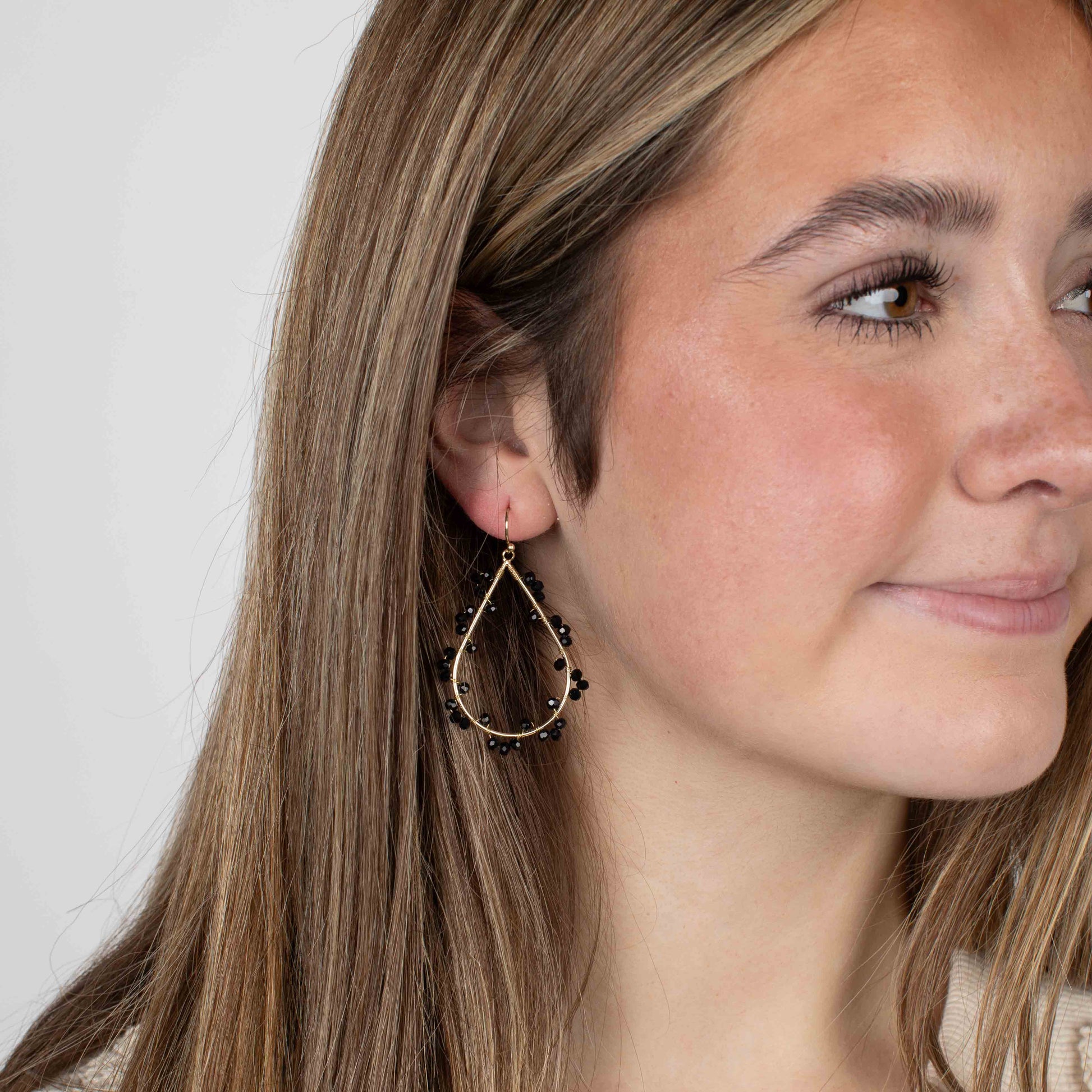 The Ivy Earrings are a stunning blend of elegance and edge, designed to make a statement with every wear. These 2" teardrop-shaped hookback earrings feature a sleek gold base, artfully wire-wrapped with chic black crystals, reminiscent of climbing ivy. Lightweight and comfortable, they’re perfect for adding a touch of sophistication to any look. Timeless and versatile, the Ivy Earrings are the perfect accessory for both everyday outfits and special occasions.