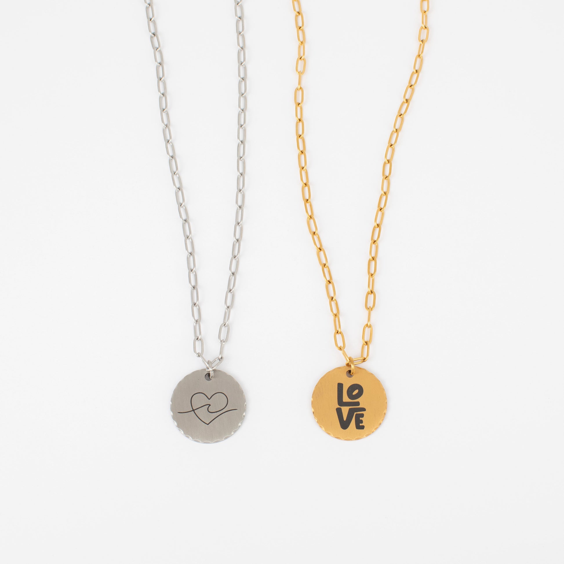 The Parker Necklace is a timeless piece with a personal touch. Available in stainless and gold stainless, it features a round plate that can be customized with your own design, photo, handwriting, or meaningful detail. Its hammered edge catches the light beautifully, adding a soft shimmer to the elegant finish. Paired with a classic oval link chain and adjustable from 17"-20", the Parker Necklace is the perfect blend of sentiment and style—made to be uniquely yours.